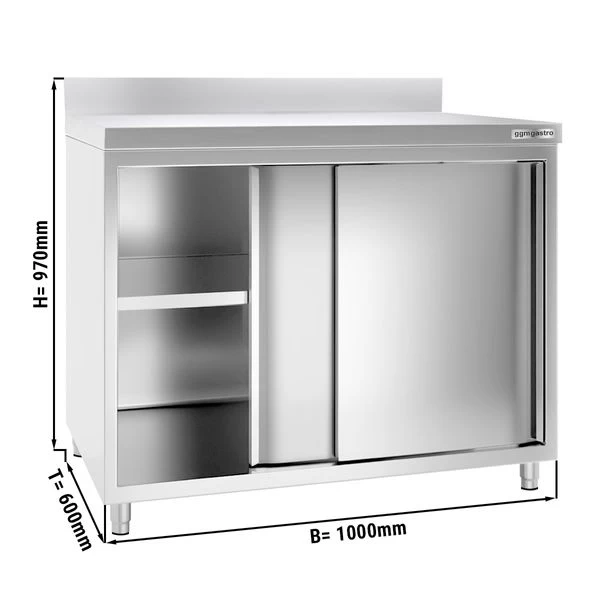 Edelstahl Arbeitsschrank ECO – 1000x600mm – Mit Schiebetür Und Aufkantung