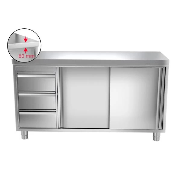 - Korpus, Schubladen und Türen aus hochwertigem Edelstahl AISI 304