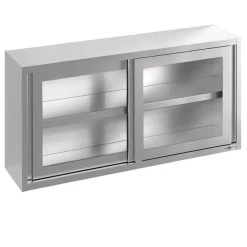 Edelstahl Wandhängeschrank – 1600x400mm – Mit Glasschiebetür – 650mm Hoch