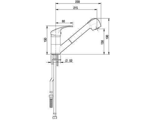 - Spülbeckenanschluss: 52 mm