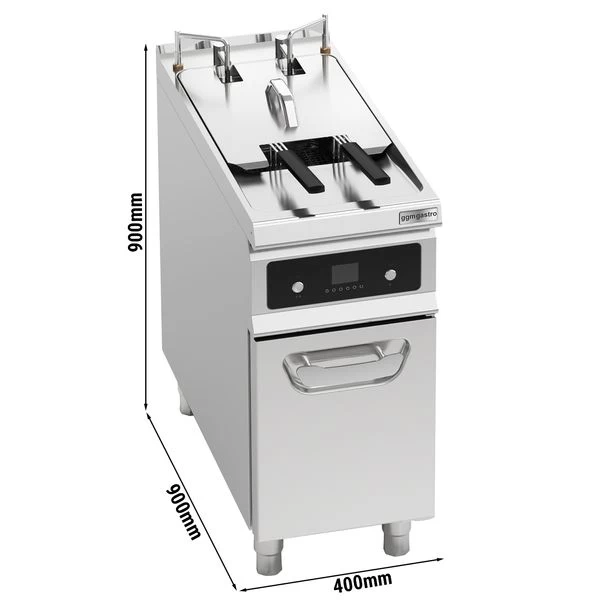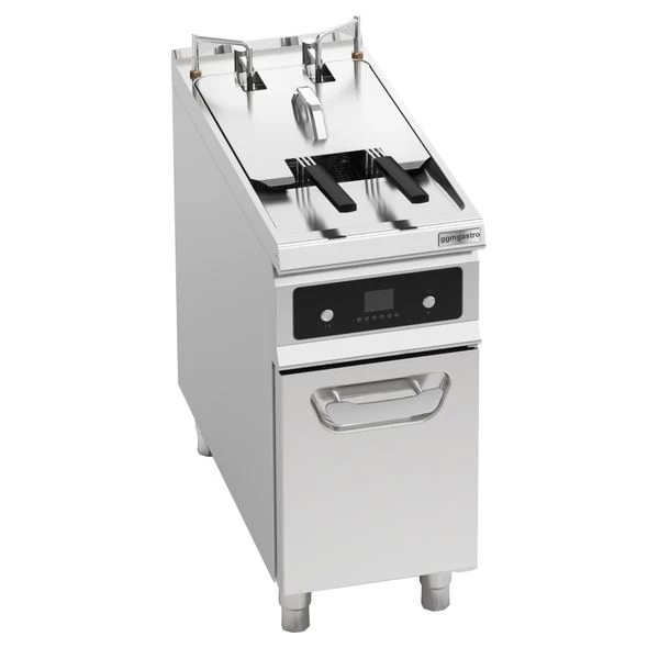 - Automatische & einzeln gesteuerte Korbanhebung – kein verbrennen beim Frittieren mehr – Körbe werden automatisch mit Hilfe der Timerfunktion angehoben