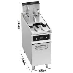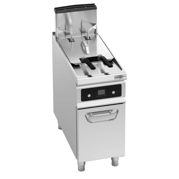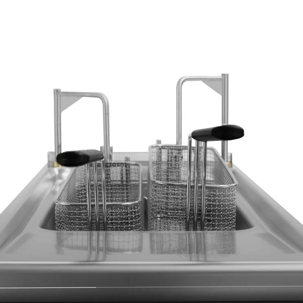 - Automatische & einzeln gesteuerte Korbanhebung – kein verbrennen beim Frittieren mehr – Körbe werden automatisch mit Hilfe der Timerfunktion angehoben