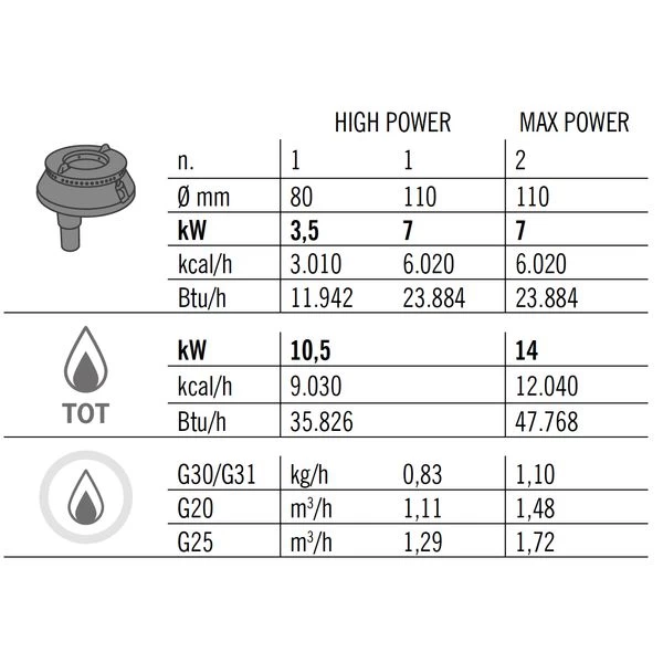 | Kcal/h | 12.040 |