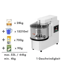Teigknetmaschine – 53 Liter / 44 Kg – 1 Geschwindigkeit – Kessel Abnehmbar Und Rührwerk Aufklappbar