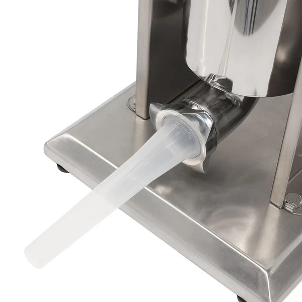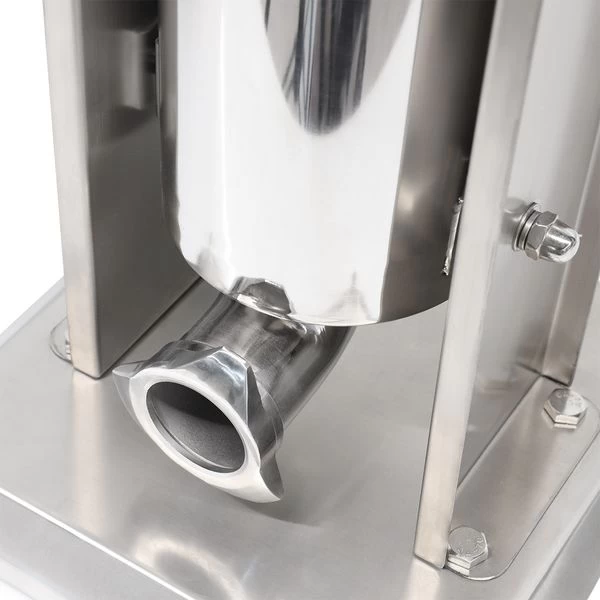 Extrem robuster Wurstfüller für den manuellen Betrieb in vertikaler Ausführung inkl. vier Wurstfülltrichter mit unterschiedlichen Durchmessern.