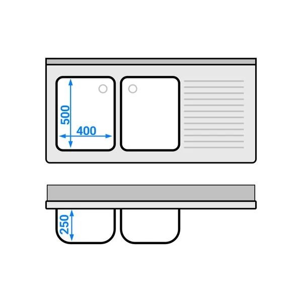 - Arbeitsfläche/Abtropffläche aus geprägtem Edelstahl