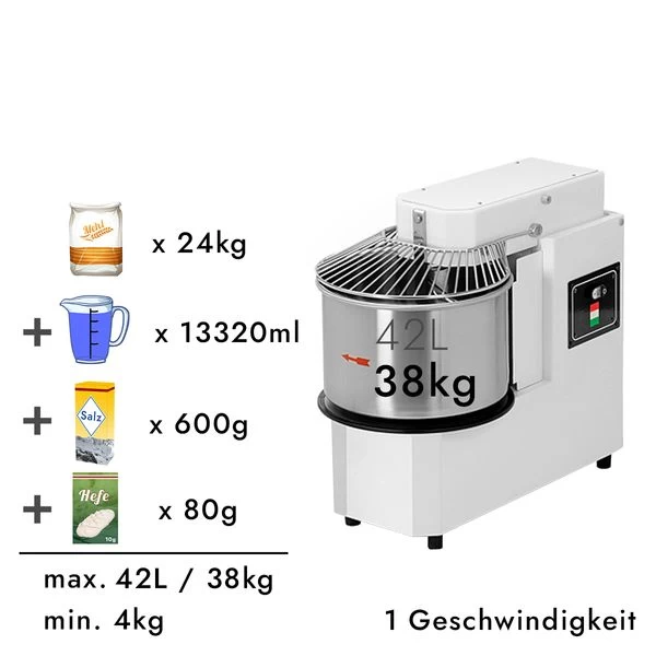 - Bitte beachten Sie, dass sich während des Knetvorgangs der Kessel immer in Pfeilrichtung drehen muss. Sollte sich der Kessel entgegen der Pfeilrichtung drehen, muss die Belegung der Phasen von einem Fachmann geprüft werden