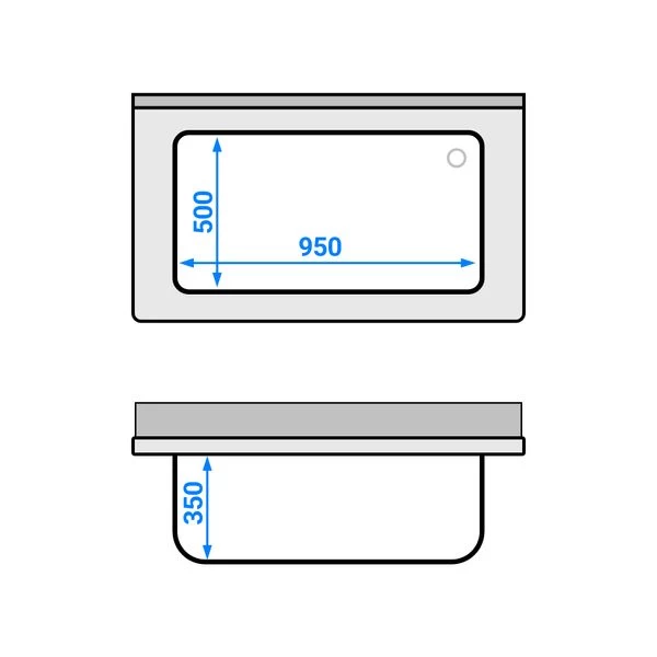 - Beckenmaß B x T x H: 950 mm x 500 mm x 350 mm